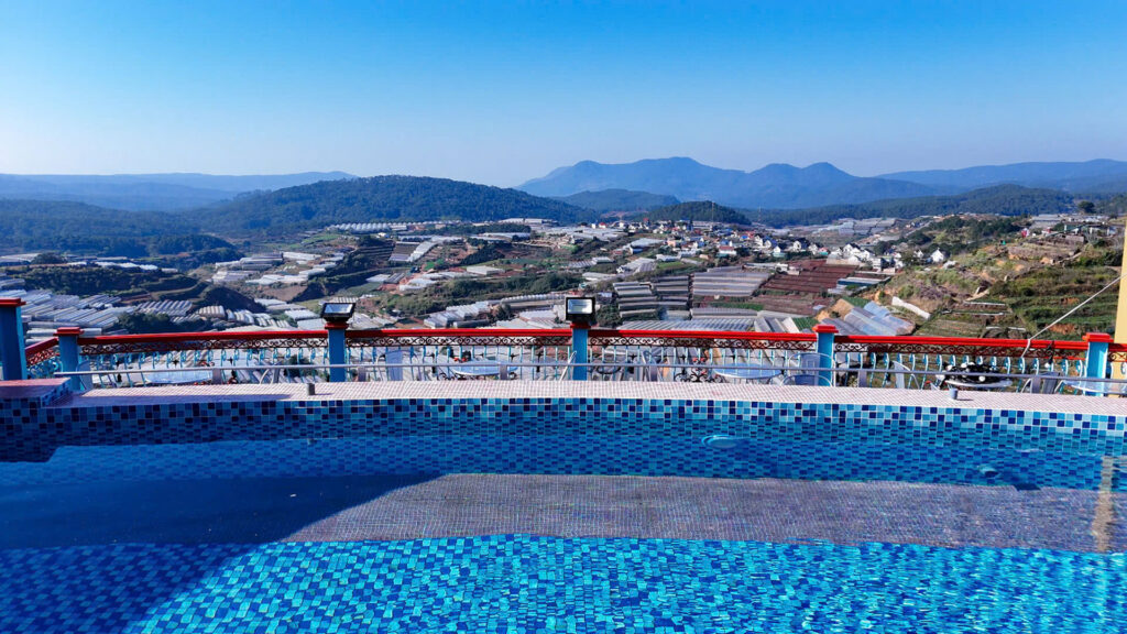 Hồ bơi nước nóng vô cực tại Sun Heaven Đà Lạt là nơi bạn thả lỏng cơ thể và để tâm trí được nghỉ ngơi đúng nghĩa, giữa tiết trời se lạnh đặc trưng của Đà Lạt.