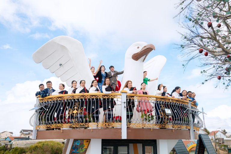 iếng cánh chim vang lên giữa không gian cao nguyên tạo nên một cảm giác rất khác – một nhịp thở dịu dàng giữa đời sống bộn bề. Bồ câu từ lâu đã là biểu tượng của hòa bình, của sự bình an và của hy vọng. Ở Sun Heaven, hình ảnh ấy không chỉ là một chi tiết trang trí, mà là một phần của tinh thần nơi đây – nơi con người tìm về sự an yên, nơi những buổi sáng bắt đầu bằng ánh nắng nhẹ và những buổi chiều khép lại trong sự tĩnh lặng. Có những gia đình đến đây nghỉ dưỡng. Có những cặp đôi chọn nơi này để ghi dấu khoảnh khắc hạnh phúc. Có những người chỉ đơn giản muốn tìm một khoảng trời để thở chậm lại.