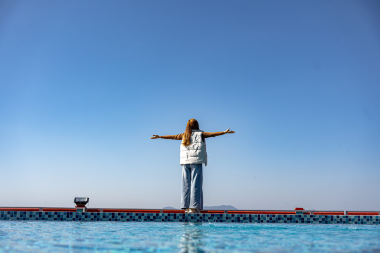 Bạn bước ra khu hồ bơi khi gió còn mỏng, tay còn hơi lạnh, nhưng chỉ cần chạm chân xuống nước là cơ thể đổi trạng thái ngay—như được “thả” khỏi một ngày dài. Làn nước ấm không làm bạn sốc nhiệt, nó làm bạn mềm ra. Vai hạ xuống. Nhịp thở chậm lại. Những thứ ồn trong đầu tự nhiên nhỏ đi.