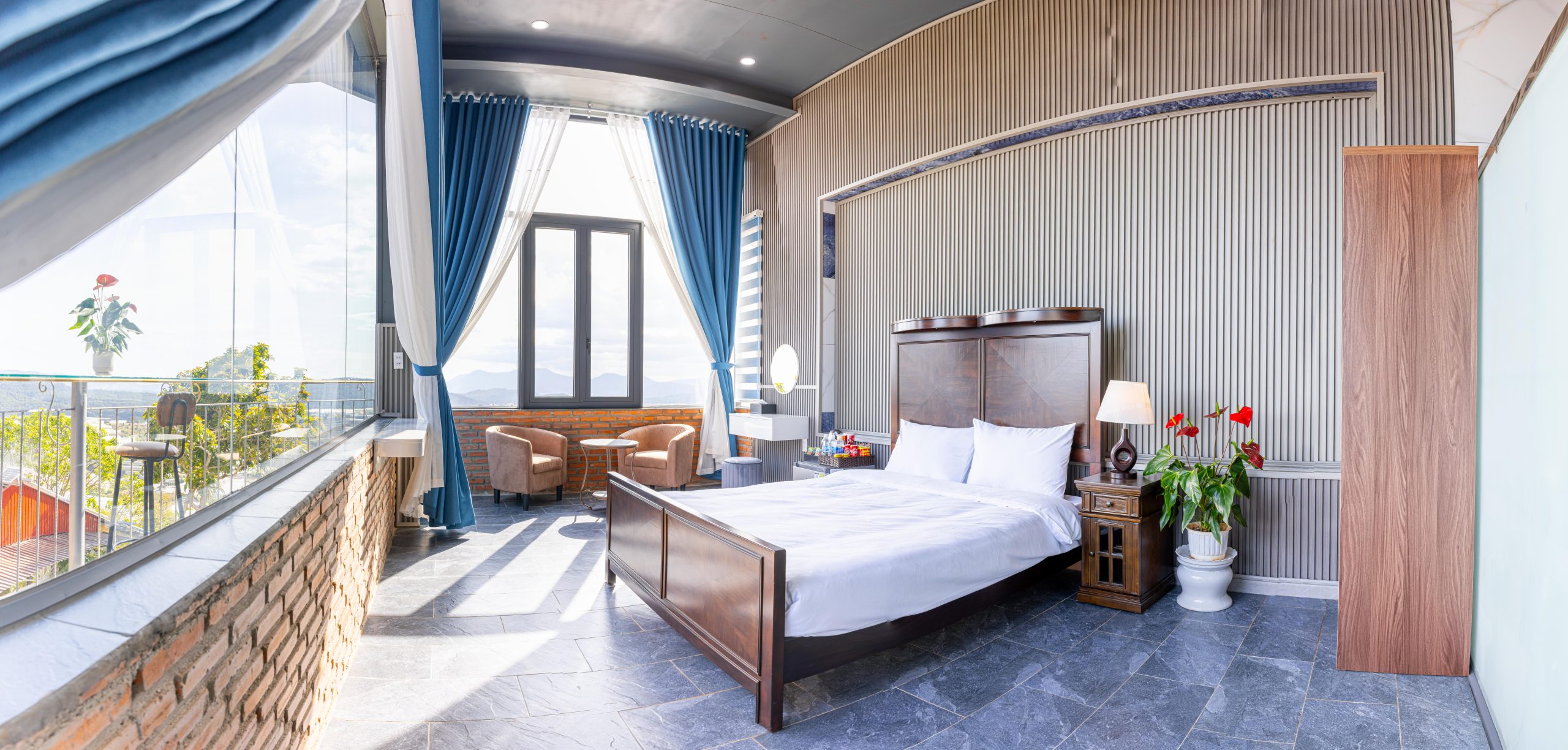 Deluxe Balcony sở hữu ban công riêng thoáng mát, là nơi lý tưởng để nhâm nhi cà phê, hít thở khí trời và ngắm cảnh thật chậm. Không gian được thiết kế để bạn có thêm “khoảng riêng” ngoài phòng, phù hợp cho những ai thích sự thư thái, muốn tận hưởng buổi sáng bình yên hoặc hoàng hôn dịu nhẹ tại Sun Heaven.