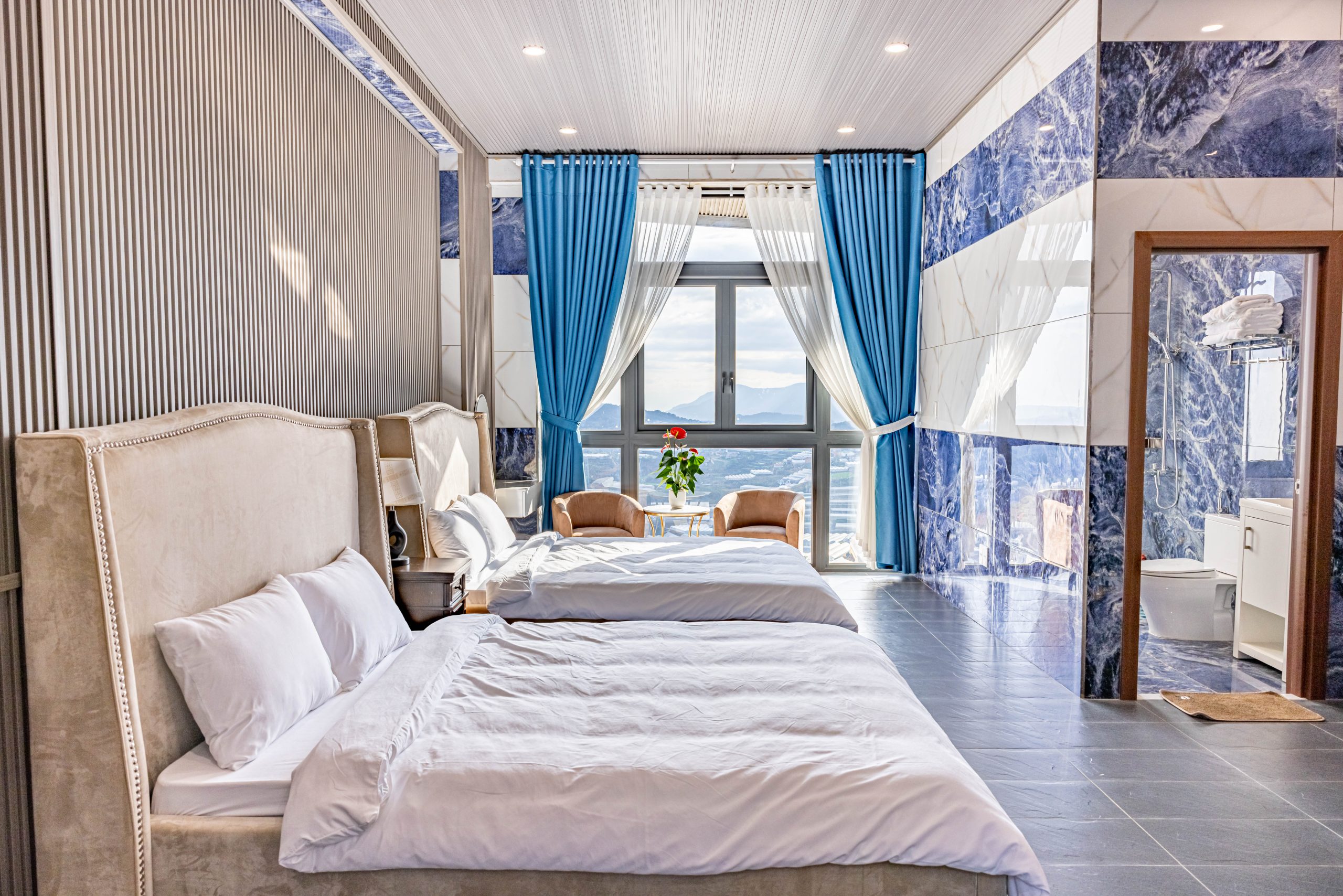 Family Room là lựa chọn phù hợp cho nhóm hoặc gia đình khoảng 4 người với bố trí 2 giường tiện lợi, rộng rãi và dễ sinh hoạt. Không gian được sắp đặt để mọi người vừa có sự thoải mái riêng, vừa có cảm giác ấm cúng khi ở cùng nhau, rất phù hợp cho chuyến đi nghỉ dưỡng gia đình tại Đà Lạt.