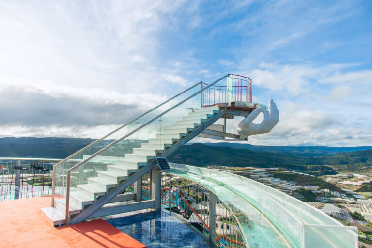 Có những nơi bạn nhìn thấy từ xa và biết chắc: “Mình sẽ lên đó.” Nấc Thang Thiên Đàng ở Sun Heaven là một nơi như vậy. Nó không đứng im như một bậc thang bình thường—nó uốn lượn mềm mại, như một dải lụa vắt ngang không trung, dẫn bạn đi từ mặt đất lên gần hơn với trời. Và điều kỳ lạ là: càng đến gần, bạn càng tự nhiên bước chậm lại. Không phải vì đường khó đi, mà vì khung cảnh khiến bạn không muốn vội.